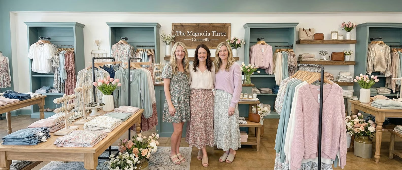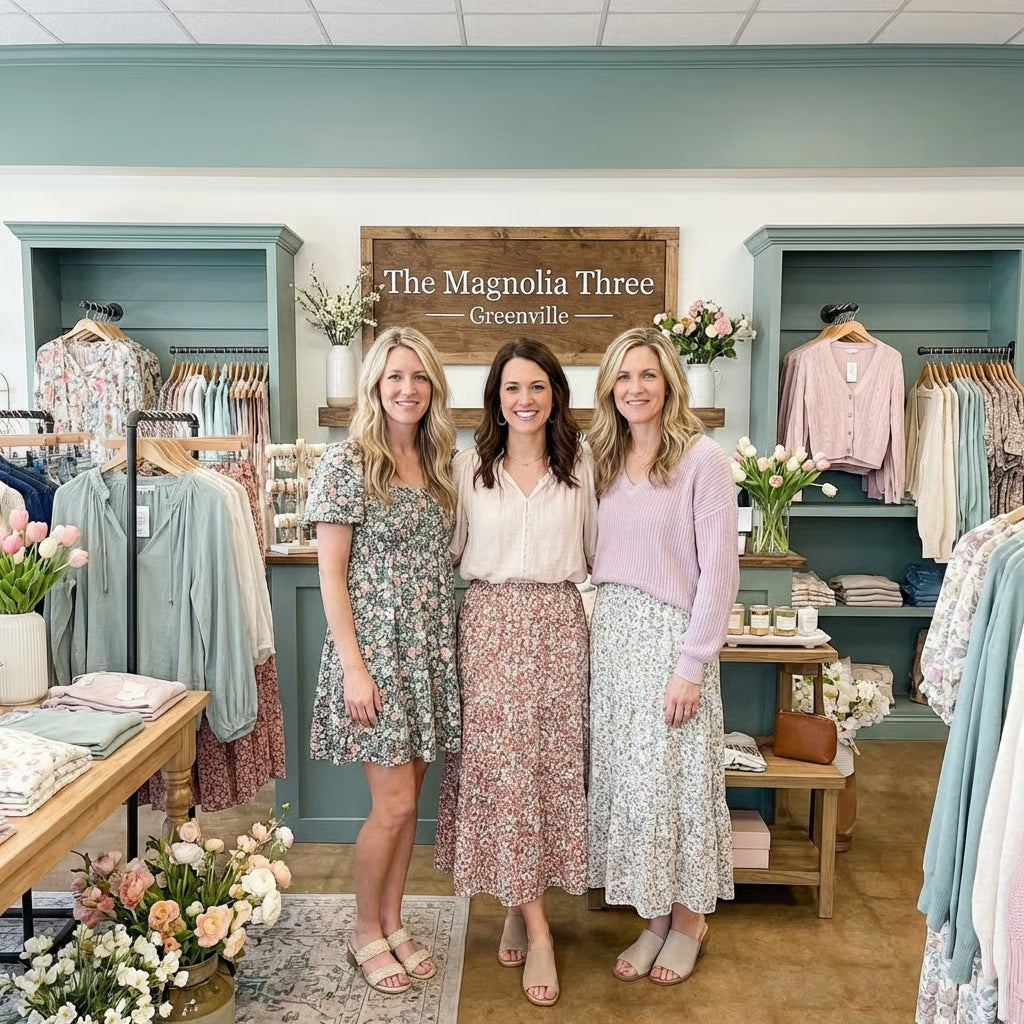 Inspired by their love for thoughtful living and effortless, comfortable style, three friends founded The Magnolia Three in Greenville to celebrate timeless fashion with a feminine, relaxed elegance.